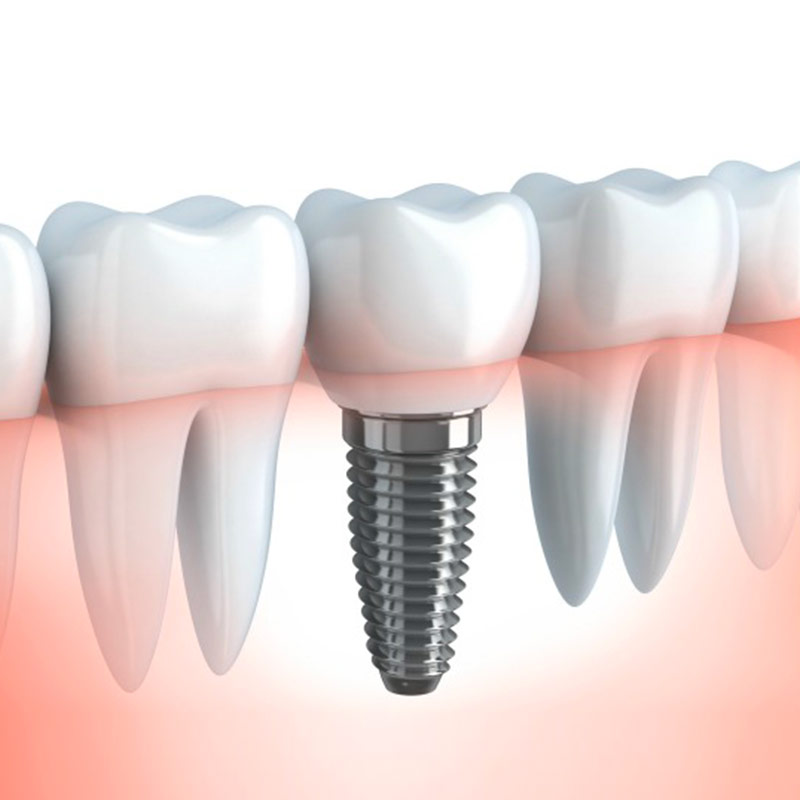 Si tratta di un intervento attraverso cui la radice naturale, mancante, viene sostituita da una artificiale ancorata nell’osso della mandibola o arcata superiore e sulla radice viene fissata la corona del dente ricostruito con protesi.